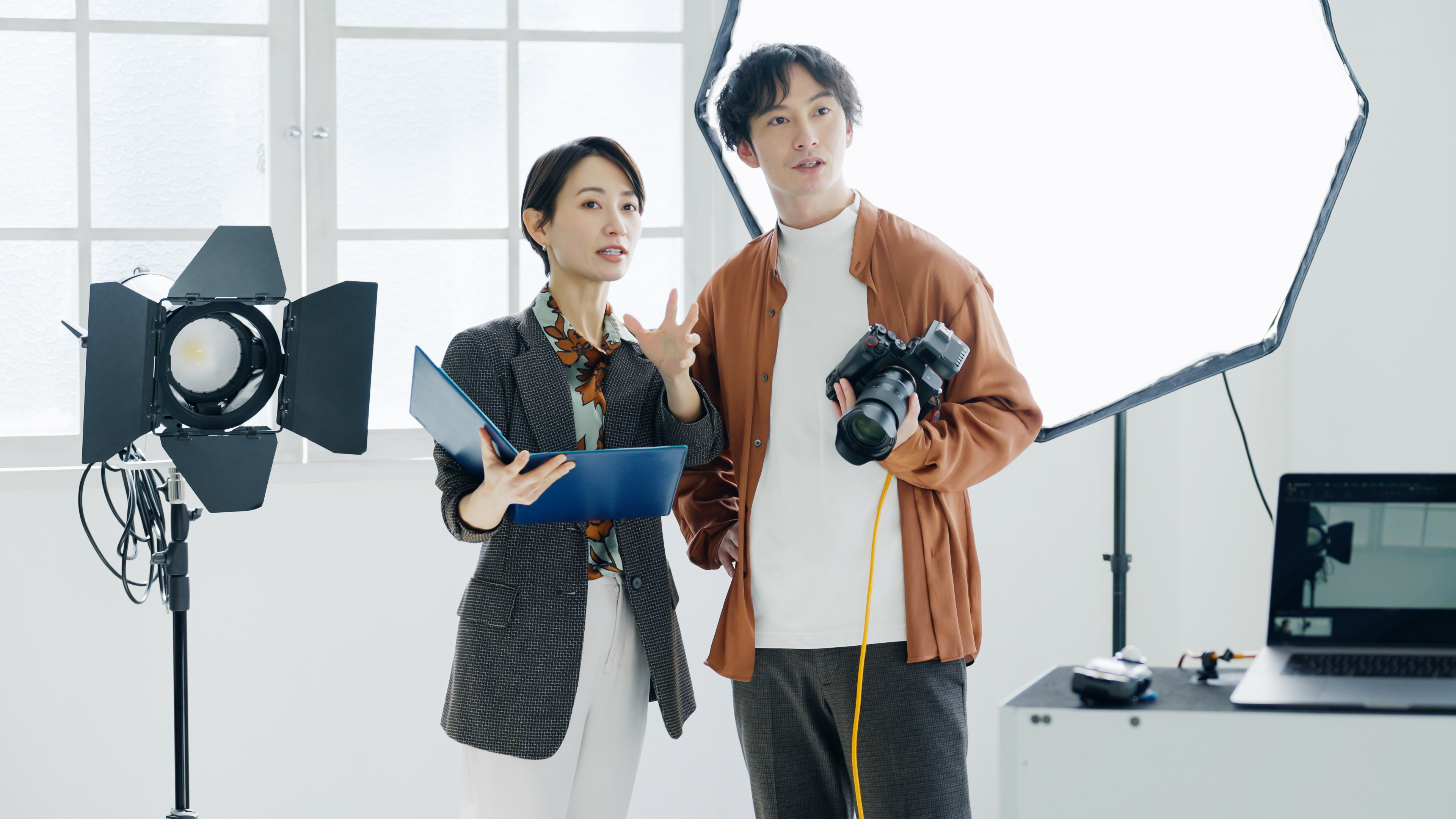 プロのカメラマンが丁寧に撮影。必要に応じて写真モデル(エキストラ)も手配します。